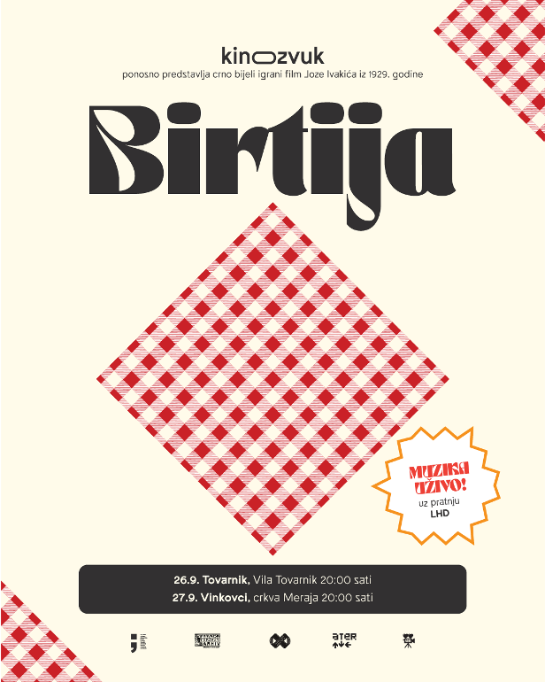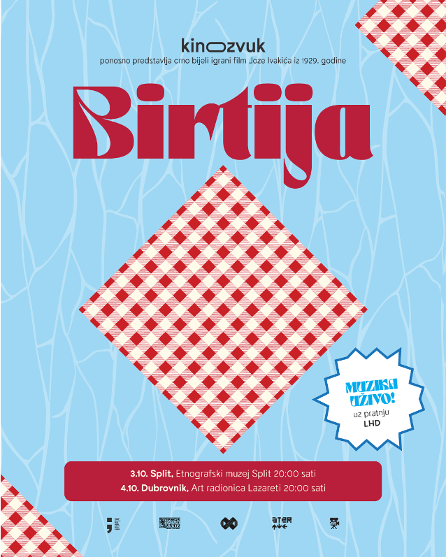 Druga sezona projekta KIN-O-ZVUK ove jeseni donosi novo iskustvo nijemog filma i glazbe uživo! Publika će imati priliku pogledati igrani, crno-bijeli nijemi film „Birtija“ (1929.) redatelja Joze Ivakića, uz izvedbu originalno skladane glazbe benda LHD uživo – i to dva vikenda zaredom, u Slavoniji i Dalmaciji.