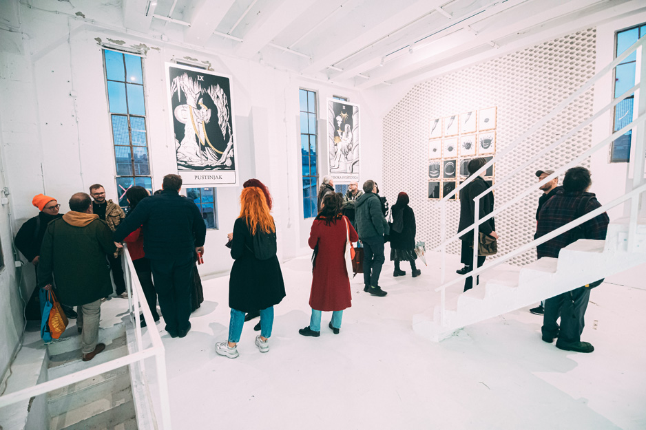 U Kuli Cetinjskoj festival je otvoren izložbom “Alhemijska kuhinja” Nine Bunjevac, Alhemijska kuhinja donosi izbor radova realiziranih u okviru serijala Tarot. Nakon izložbe preselili smo se u Guvernantu gdje se održala tradicionalna Matrijaršijska kafana. Ovoga puta nastupali su Travolta iz Borča Grede i 4 dame 100 drama i Maestro Denić.