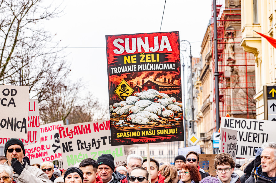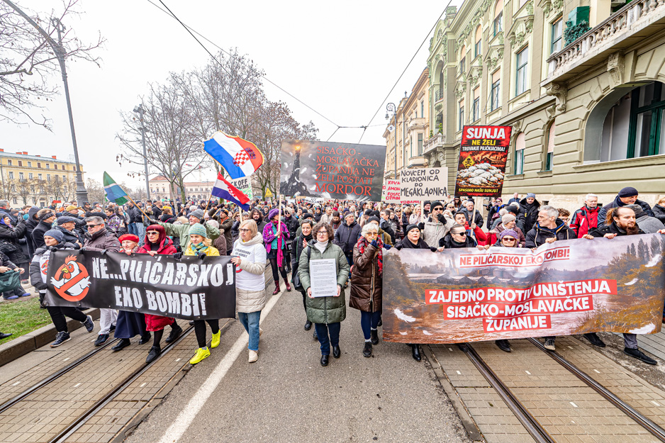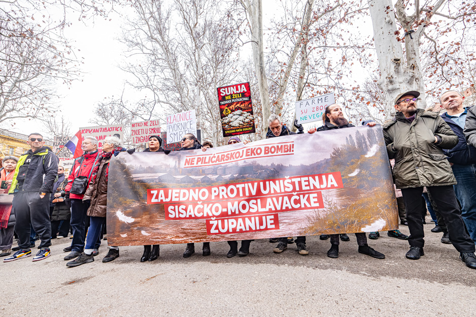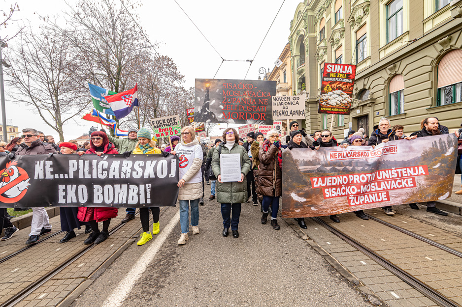 Ove subote, 21. veljače, bili smo na ulicama grada Zagreba na prosvjed protiv uništenja Sisačko-moslavačke županije pod imenom “Ne! pilićarskoj eko bombi“.