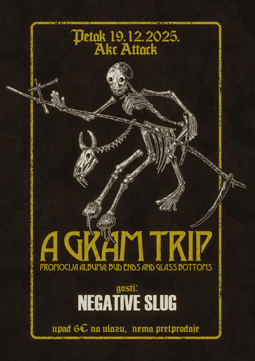 A Gram Trip najavili promociju albuma “Bud Ends And Glass Bottoms” u AKC Attacku, Zagreb – Petak 19.12.2025 uz posebne goste Negative Slug!